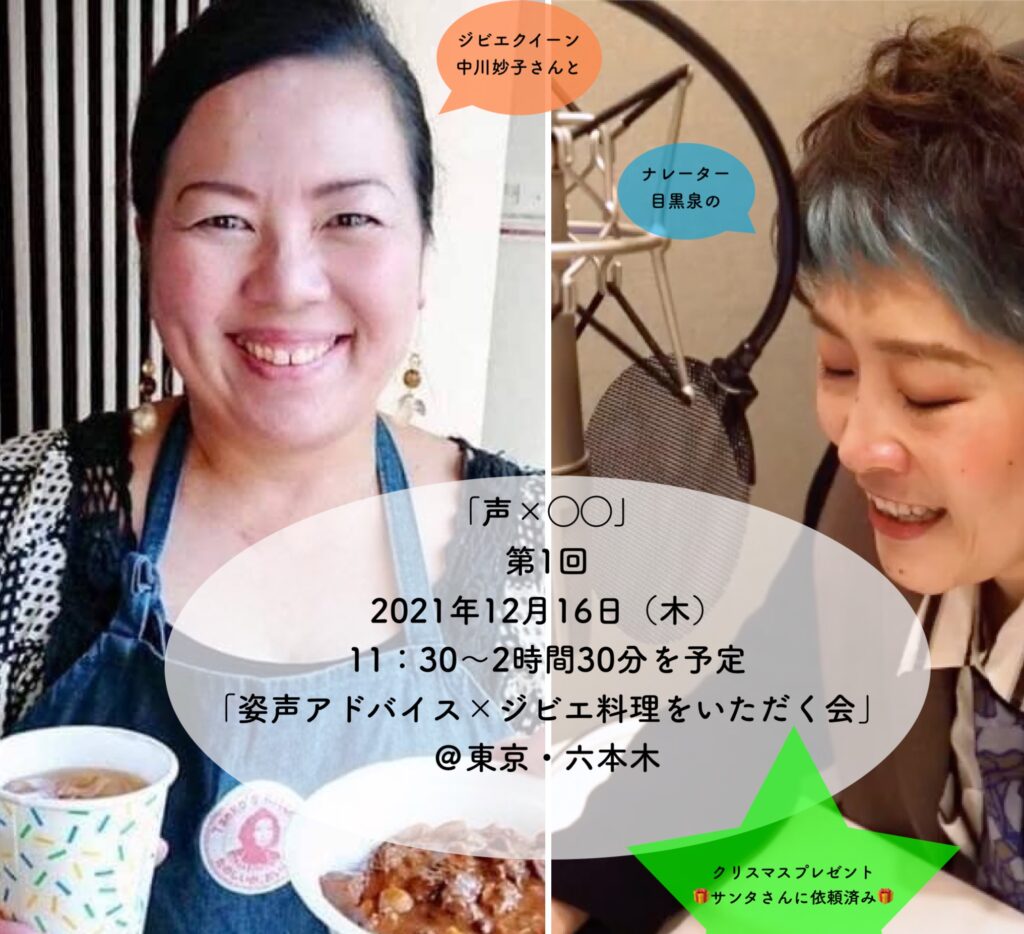 【イベント名】『姿声アドバイス×ジビエ料理をいただく会』【日時】2021年12月16日(木)11:30〜2時間30分程度を予定しております。【場所】六本木周辺 ※詳しくは参加... -